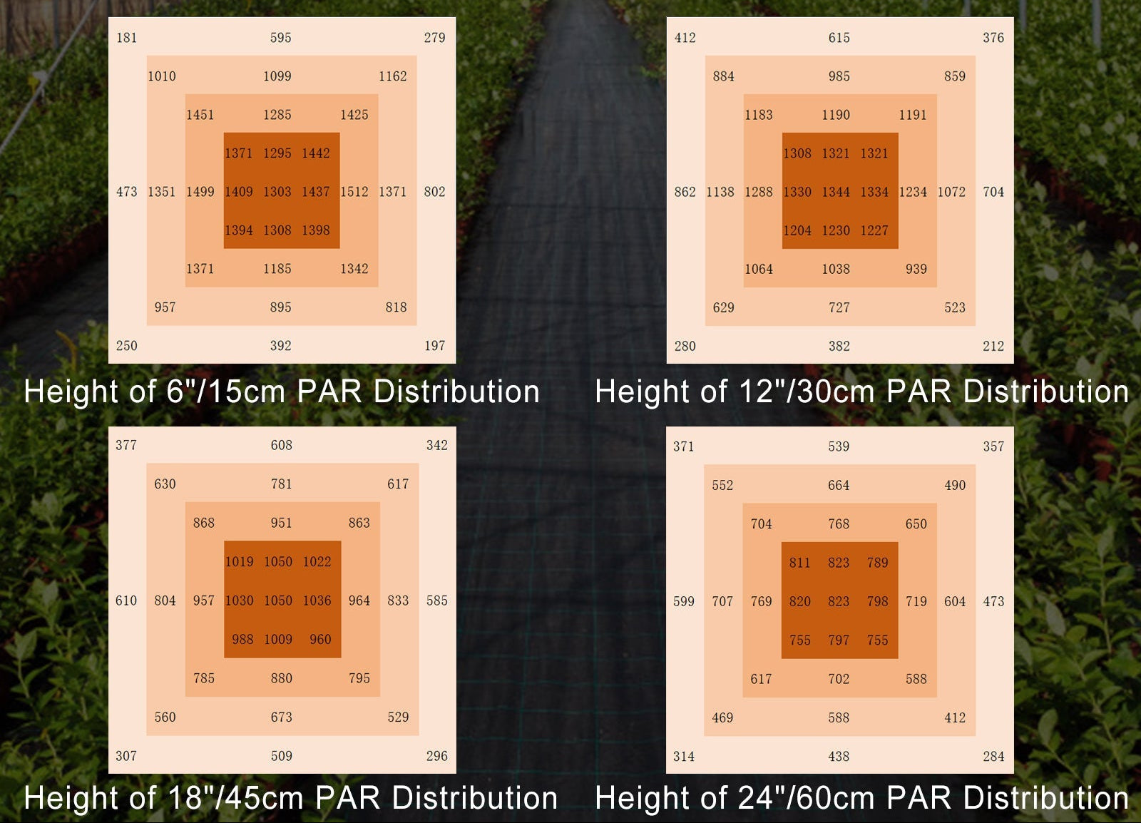 Maintains even PPFD distribution across 1.2 m × 1.2 m – 1.5 m × 1.5 m areas
